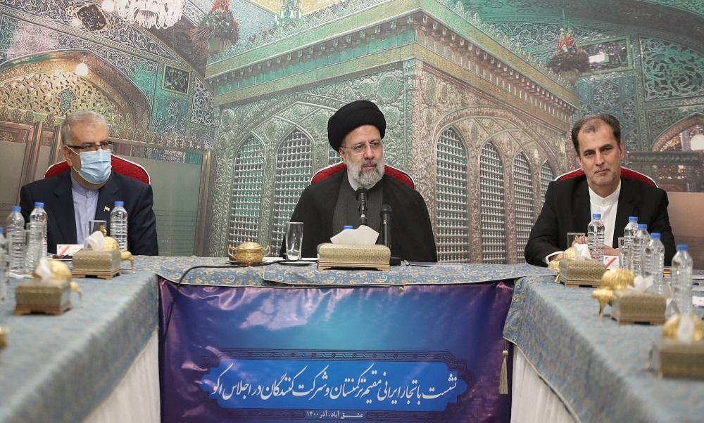 به نقل از پایگاه اطلاع رسانی ریاست جمهوری ایران، سید ابراهیم رئیسی، روز یکشنبه، ۷ آذر در دیدار تجار، بازرگانان و فعالان بخش خصوصی ایران در ترکمنستان، ایجاد تحول در همه حوزه ها به ویژه بخش اقتصادی، تجاری و بازرگانی را از اولویت های اقتصادی دولت دانست و گفت: «لازمه دستیابی به رونق اقتصادی و افزایش صادرات، این است که شرایط موجود به خوبی بررسی شده و راهکار های های مناسبی برای رفع موانع و مشکلات اتخاذ شود».