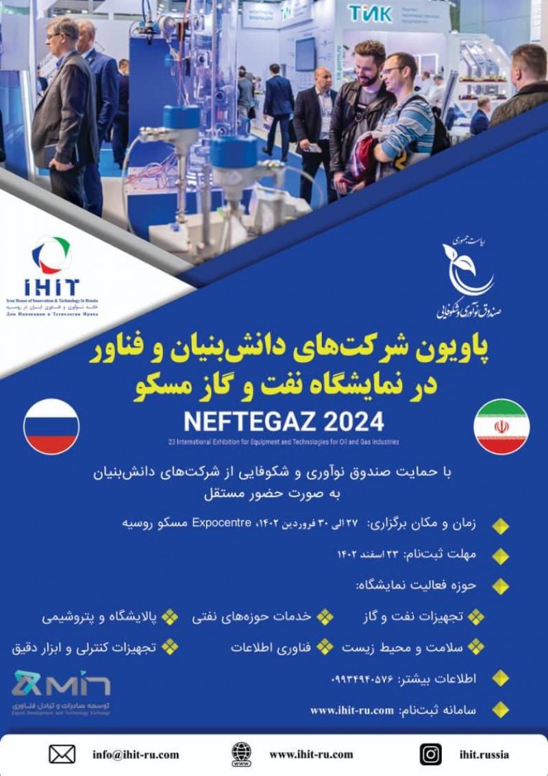 ТЕГЕРАН, 18 мар – "ВАСТИ ПРЕСС" Иранский Дом инноваций и технологий в Москве при поддержки Фонда инноваций и процветания при администрации президента ИРИ организует коллективный стенд для иранских компаний на полях 23-й международной выставки «Оборудование и технологии для нефтегазового комплекса», которая состоится 15–18 апреля 2024 в Москве.